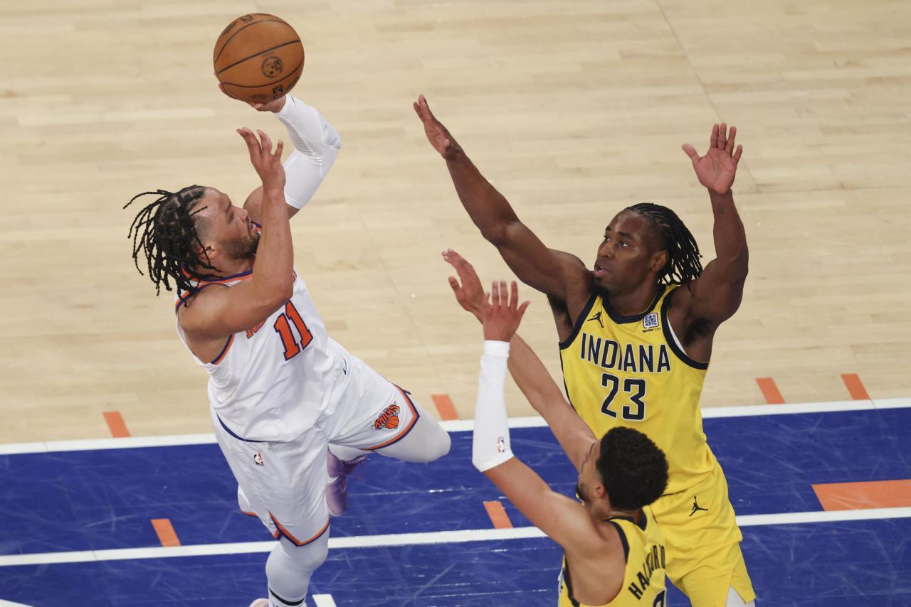 Da gingen die Knicks dann zunächst erneut in Führung, verpatzten 15,3 Sekunden vor dem Ende aber die Defensive komplett und kassierten einen Dunk von Obi Toppin. Auf die nun drei Punkte Rückstand hatte das Team trotz weiterer Wurfgelegenheiten keine Antwort mehr. Jalen Brunson war mit 43 Punkten zwar der beste Werfer des Abends, am Ende aber geschlagen.Das zweite Spiel der Serie ist in der Nacht zu Samstag erneut im Madison Square Garden in New York. Zum Einzug in die Finals der NBA braucht ein Team vier Siege.