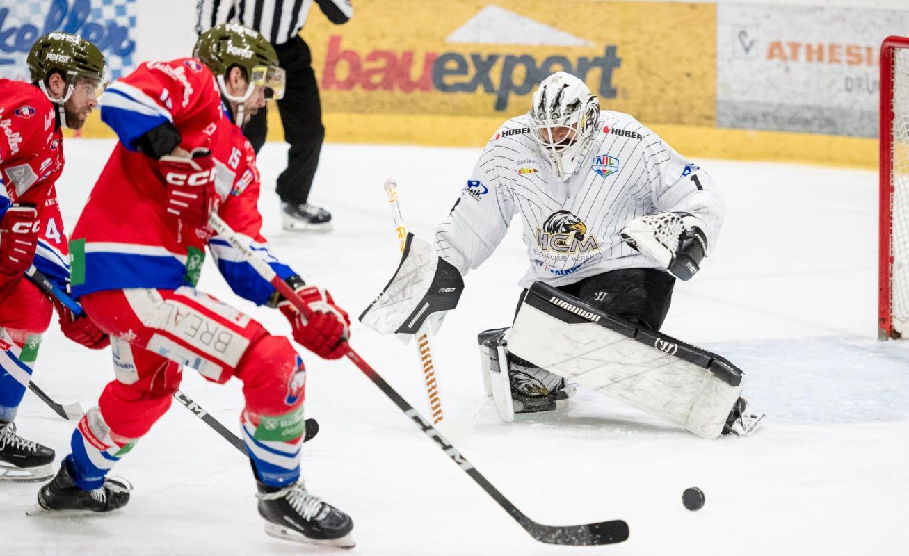 | Grödner Blitzstart | Nachdem Kasslatter aus dem Slot eine exzellente Chance verpasst, besorgt Dostalek nach 68 Sekunden die HCG-Führung, als er einen Nachschuss ins Tor schiebt. |