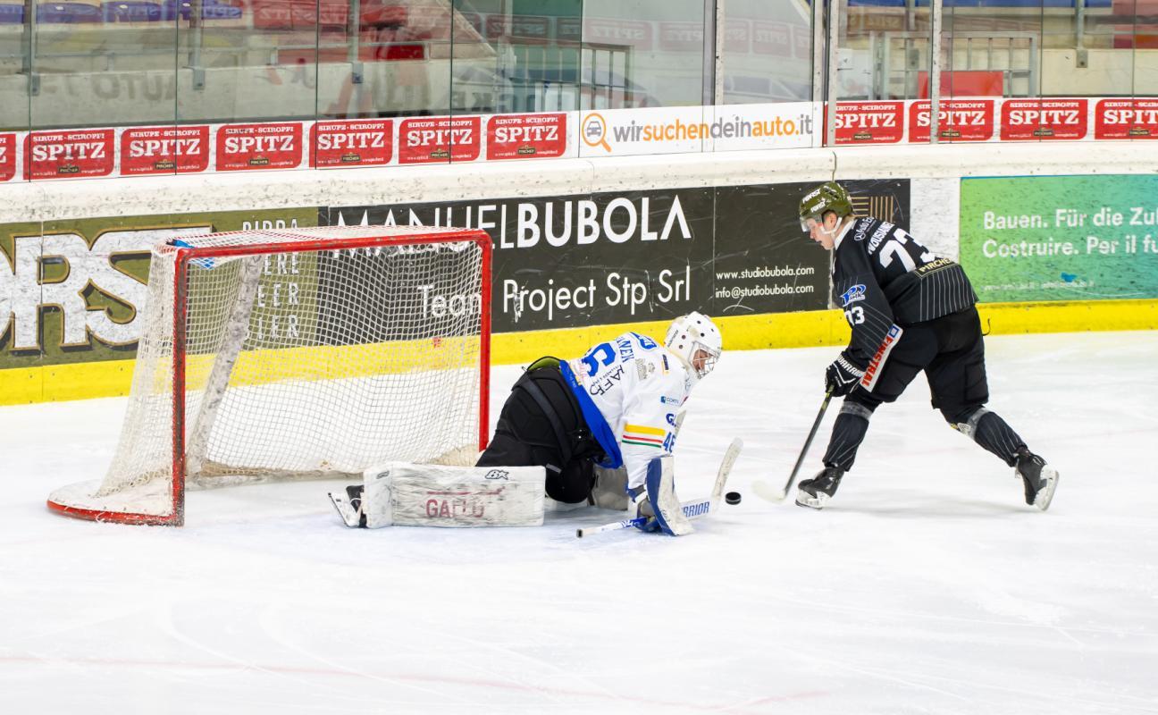 Richtig Fahrt nahm das Spiel durch Brett Welychkas 1:0 auf: Der Kanadier blieb allein vor Endre eiskalt. Dank eines Doppelschlages binnen 110 Sekunden stellte der HCG das Spiel jedoch auf den Kopf. Zuerst verwertete Matteo Luisetti einen mustergültigen Vozovik-Pass, ehe Davide Schiavone im Powerplay zum 2:1 abstaubte. Nur 29 Sekunden nach Wiederbeginn des Schlussdrittels stellte Welychka wieder alles auf null, als er von der HCG-Verteidigung verloren ging. Doch die Rittner Freude war nur von kurzer Dauer, denn in der 44. Minute legte der HCG wieder vor. Carmine Buono spielte zur Mitte, wo Vlastimil Dostalek direkt abschloss. Fortan hatten die Gäste zahlreiche Chancen, um das Spiel vorzeitig zu entscheiden – es blieb jedoch beim 3:2.Tizian Giovanelli feierte einen Shutout. © Vanna Antonello