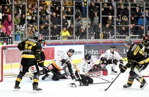 | Vogelwildes Drittel | Pustertal hat alles unter Kontrolle? Von wegen! Der Tabellenvorletzte dreht plötzlich auf – und das Resultat auf den Kopf. Bukarts nach einem Rebound (Pasquale sieht nicht gut aus, 22.), Dornbach nach einer genialen Kombination (30.) und der überragende Adams mit einem Kreuzeckschuss (32.) lassen die Intercable Arena verstummen. Doch Frycklund hat noch einen auf Lager und gleicht in der 38. Minute zum 3:3 aus. |