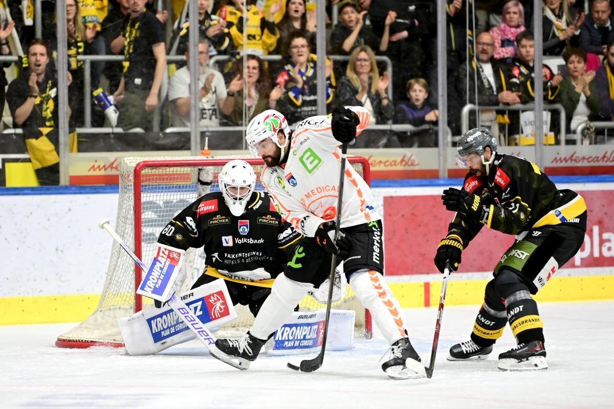 | Das war’s wohl | Pustertal stürmt, Graz trifft. Nick Bailen fackelt nach einem gewonnenen Bully nicht lange und bezwingt Pasquale über der Schulter. 13 Sekunden vor Drittelende lässt Koch – mit einem weiteren Schuss unter die Latte – die Intercable Arena verstummen. |