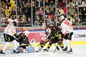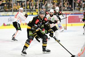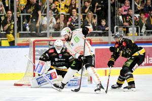 | Wie verhext | Bowlby hat bei einem schnellen Konter über Purdeller die große Chance auf den Anschlusstreffer, stattdessen fällt aber das 0:2, als Hora im Powerplay mit einem Direktschuss erfolgreich ist. |