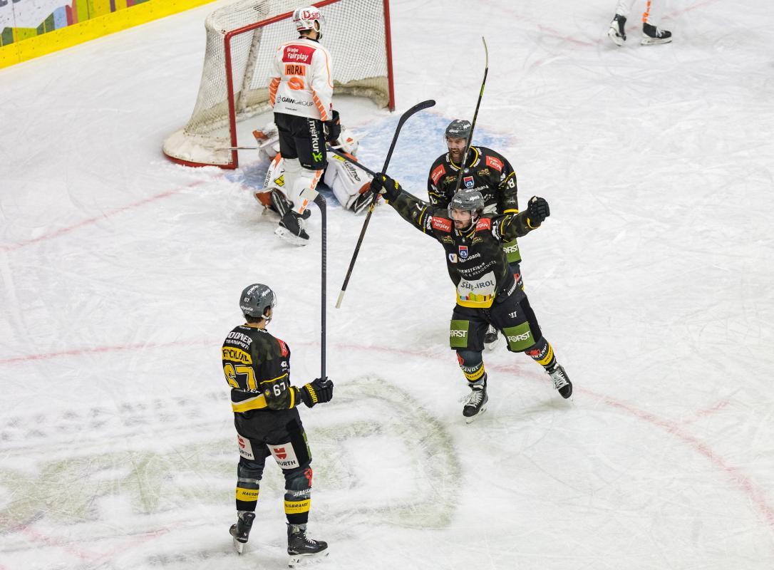 | Pusterer Feuer | Die 3.104 Fans in der Arena bekommen einen leidenschaftlichen, unermüdlichen, heldenhaften HCP zu sehen, der die Partie dreht! Erst bekommt Routinier Ticar zu viel Platz und vernascht Goalie Wieser (11.), dann steht Frycklund bei einem Rebound da, wo ein Stürmer stehen muss – und lässt die Arena mit dem 2:1 beben (15.). |