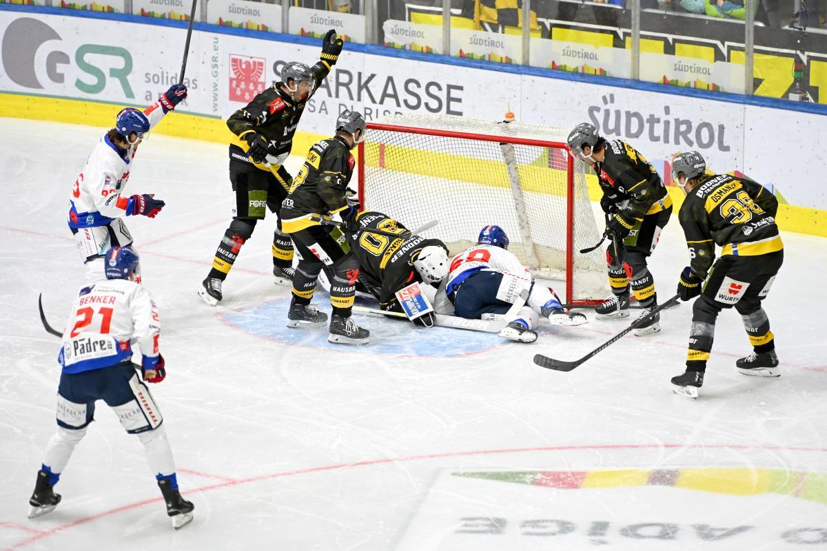 | Doppelschlag | Pustertal sorgt im zweiten Drittel mit zwei Toren binnen 28 Sekunden für klare Verhältnisse. Zunächst verwertet Frycklund im Powerplay einen perfekten Lipon-Pass, dann gibt Mantinger einem Almquist-Abschluss die entscheidende Richtungsänderung. |