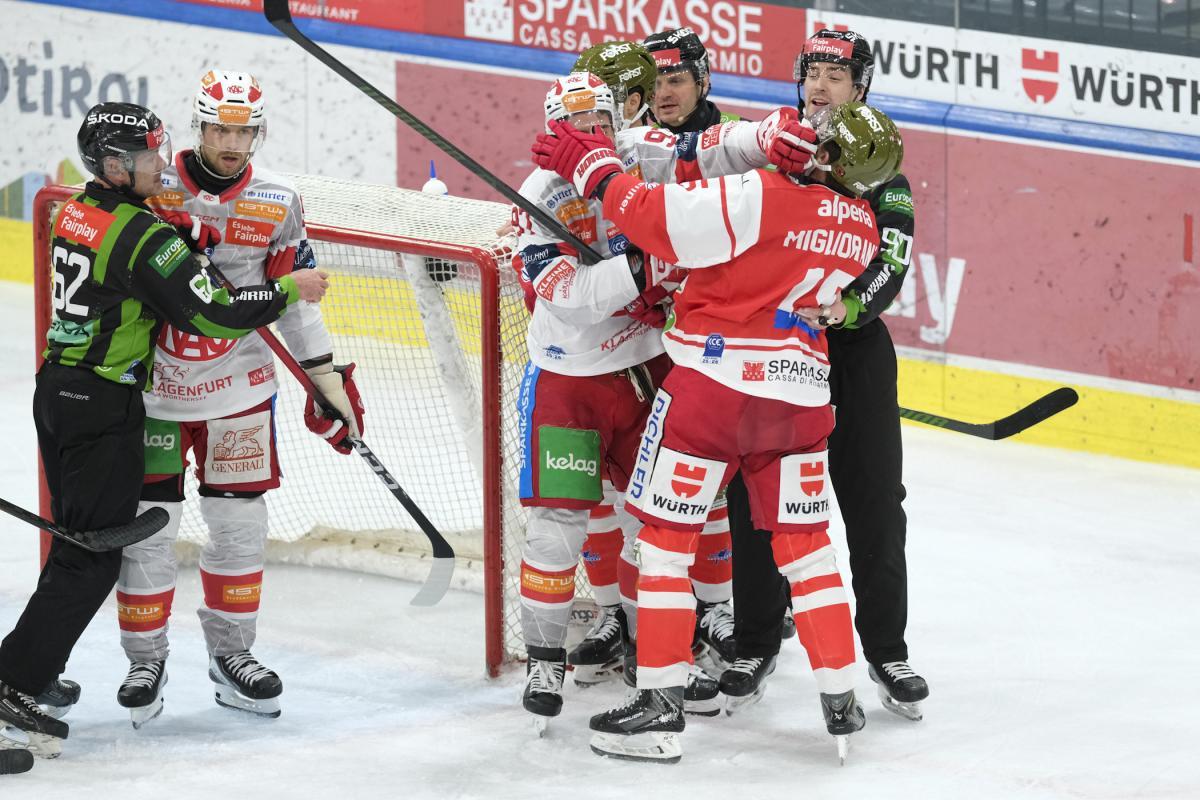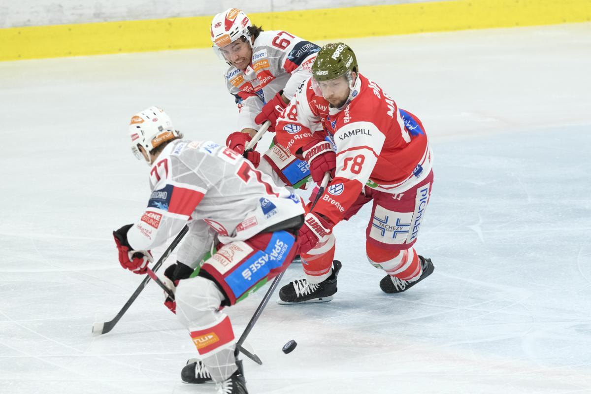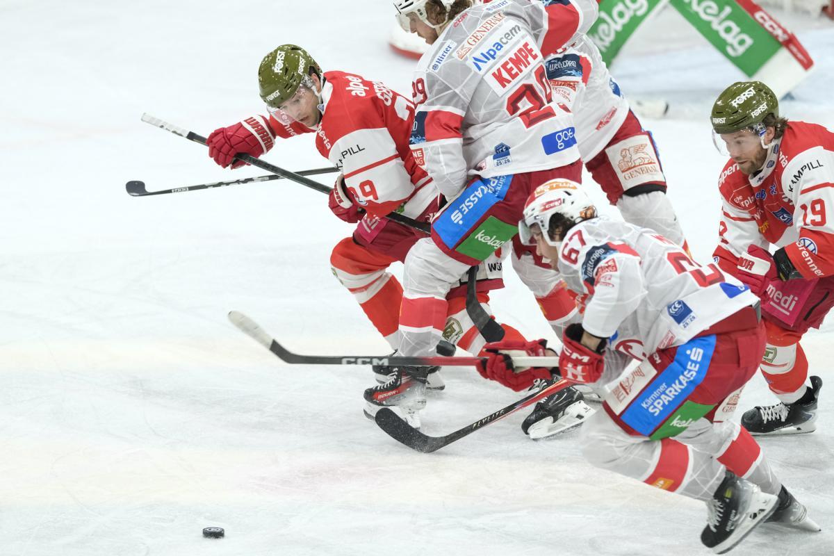 | Barberio-Unachtsamkeit | Beim 1:0 der Klagenfurter spielt ausgerechnet Comebacker Barberio eine Schlüsselrolle. Bei seinem Versuch, einen KAC-Angriff zu unterbinden, wird er von Mursak überspielt. Dieser trifft Sekundenbruchteile später in die Maschen (24.). |