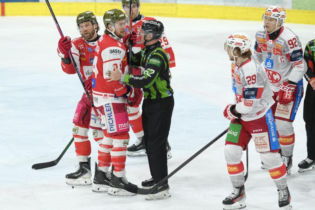 Die Unparteiischen, der Kärntner Christian Ofner und der Slowene Milan Zrnic, trafen kleinliche, mitunter fragwürdige Entscheidungen – und das reichte, um nicht nur die 3.000 Bozner Fans gegen sich aufzubringen, sondern gleich auch die Cracks in Weiß und Rot. Nach einem ausgeglichenen Startdrittel warfen diese jegliches Benehmen über Bord und straften sich selbst durch Undiszipliniertheiten. Die Klagenfurter brauchten die Foxes nur etwas kitzeln und prompt setzte es eine Strafe.