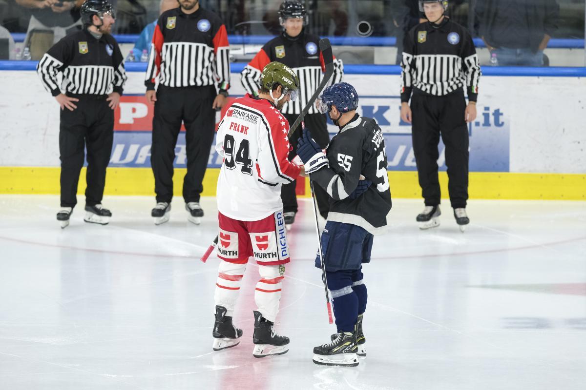 Im letzten Drittel erhöhten die Gäste die Drehzahl ihres Motors – ohne aber Gianluca Vallini in große Schwierigkeiten zu bringen. Der Bozner Backup stellte seine große Verlässlichkeit einmal mehr unter Beweis. Fünf Minuten vor Schluss bot sich den Hausherren dann die Doppelchance, den Sack zuzumachen. Luca Frigo scheiterte bei seinem Alleingang aber an Ruzicka, während Frank nur den Pfosten traf. 6,8 Sekunden vor Schluss machte Bozens Nummer 68, Michele Marchetti, mit einem Empty-net-Treffer dann aber den Turniersieg perfekt.