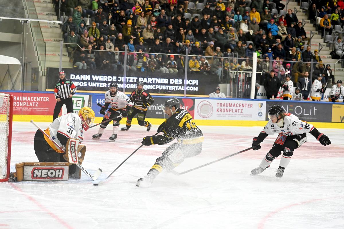 Die Intercable Arena bleibt eine uneinnehmbare Festung: Bereits zum achten Mal in Folge ging der HC Falkensteiner Pustertal am Sonntagnachmittag auf heimischem Eis als Sieger hervor. Maßgeblichen Anteil am deutlichen Erfolg über die Pioneers Vorarlberg hatte ausgerechnet jener Spieler, der zuletzt mit dem Toreschießen schwer gerungen hatte: Tommy Purdeller.