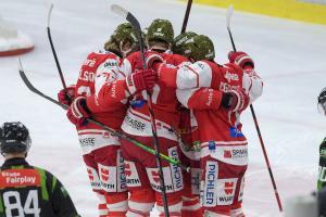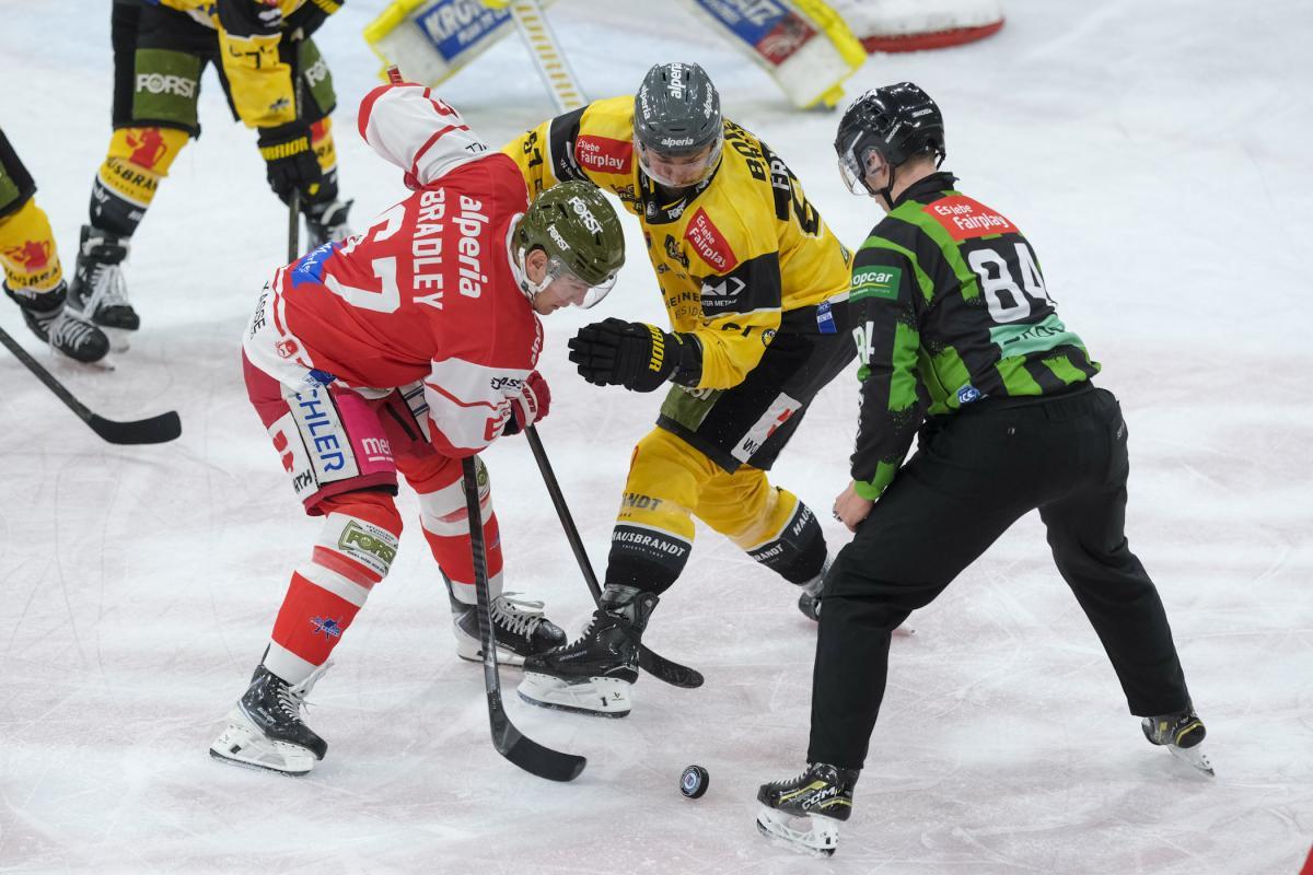 | Vier im Mittelabschnitt | Nach der ersten Pause lädt Pustertal weiter zum Torschießen ein: HCP-Verteidiger Zanatta lenkt einen Gazley-Schuss ins eigene Netz (22.), Rueschhoff legt Pollock das 5:0 auf (31.), dann darf sogar mal Verteidiger Dylan DiPerna (32.) und schließlich trifft McClure ein weiteres Mal im Powerplay (36.). Es ist der 27. Saisontreffer des HCB-Toptorjägers. |
