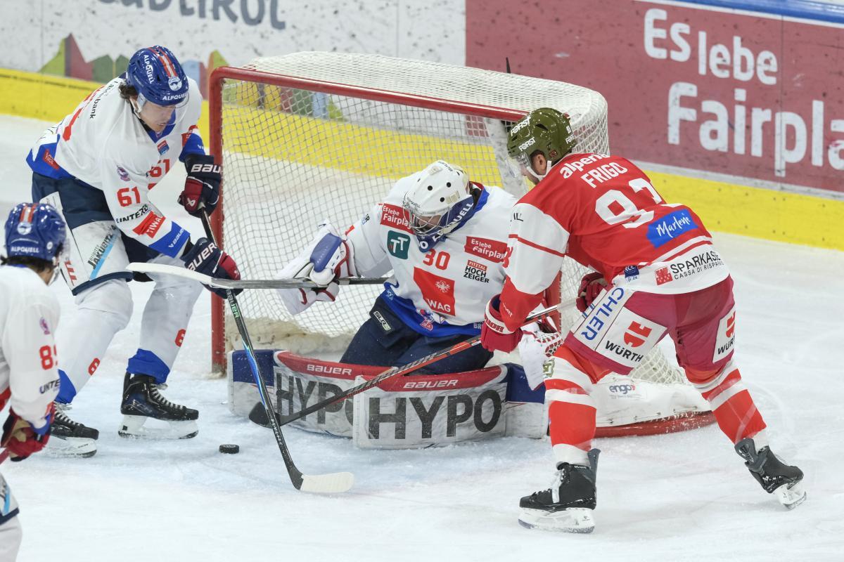Seitdem Gibson da ist, muss Harvey um seine Zukunft in Bozen bangen – und sich dementsprechend Spiel für Spiel beweisen. An diesem Abend zeigte er jedenfalls, dass er sein Handwerk wahrlich nicht verlernt hat. Er hielt alle 27 Schüsse auf seinen Kasten. Reaktionsschnell, aufmerksam, abgebrüht vereitelte er die wenigen Innsbrucker Chancen, Abpraller ließ er dieses Mal keine zu. Dabei konnte er sich auch auf seine Vorderleute verlassen, die ihn in jüngster Vergangenheit immer wieder im Stich gelassen hatten.Selbst Matt Wilkins, der dem HCB am Mittwoch mit einem Viererpack noch einen Punkt gekostet hatte, war im Retour-Match komplett abgemeldet. Er fiel lediglich bei einem handfesten Scharmützel mit HCB-Heißsporn Cristiano DiGiacinto auf.