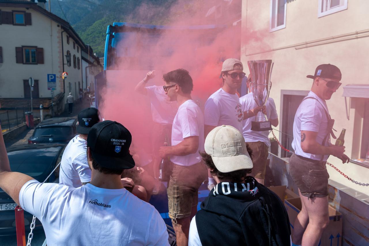 „Die Jungs haben nach dem Sieg am vergangenen Donnerstag im Grunde bis letzten Sonntag durchgefeiert. Die offizielle Meisterfeier am Samstag, die von unserem Ex-Präsidenten Günther Heidegger moderiert wurde, war dann ein echtes Volksfest für ganz Kaltern. Der LKW-Corso von der Kellerei zum Marktplatz war Gänsehaut pur. Wenn man sieht, wie Hunderte Fans die Mannschaft empfangen, während Kapitän, Assistenten und Trainer vom Rathausbalkon gemeinsam mit Bürgermeister Christoph Pillon jubeln, weiß man, was Eishockey diesem Dorf bedeutet.“