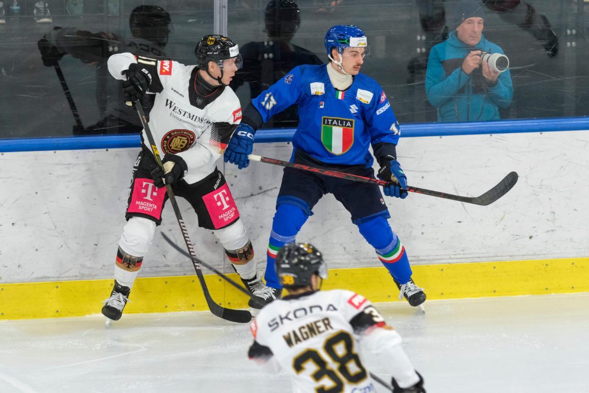 Das Blue Team hat die Olympia-Generalprobe gegen die DEB-Auswahl nach einer leidenschaftlichen Vorstellung mit 4:3 verloren. Bei den Deutschen fehlten zwar die sieben NHL-Stars um Leon Draisaitl und Moritz Seider, dennoch brandete auf den Rängen Begeisterung auf. Und für diese sorgten die Azzurri.