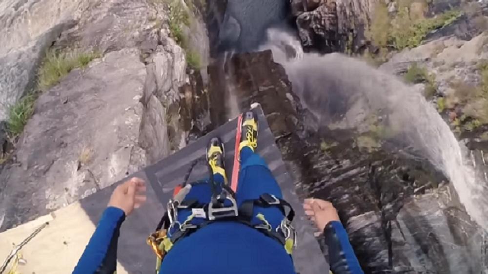 Aus schwindelnder Höhe von fast 60 Metern sprang der Brasilianer Laso Schaller in einen nur 8 Meter tiefen See. Der Weltrekordsprung entstand am Wasserfall Cascata del Salto in der Schweiz.