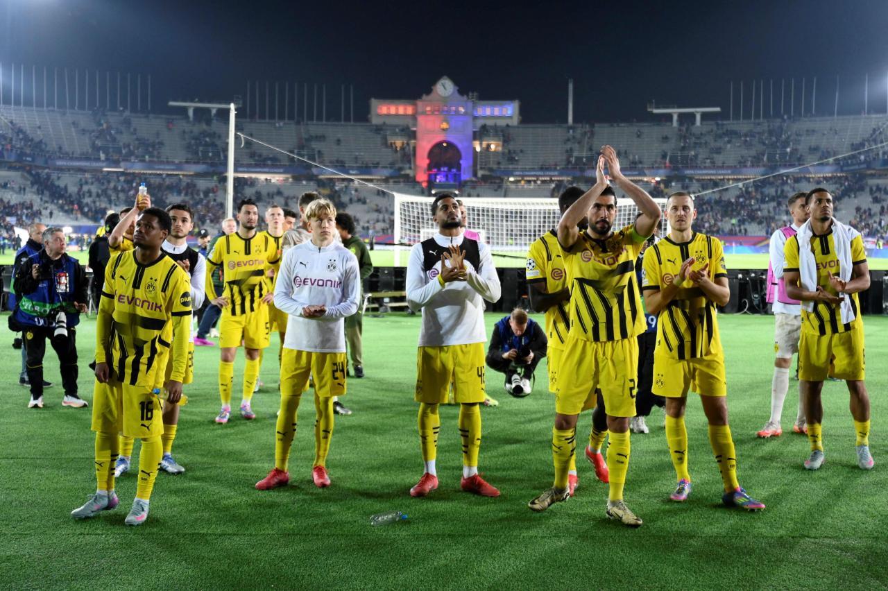 Katzenjammer herrschte hingegen bei den Borussen nach der Lehrstunde in Barcelona. „Es war insgesamt einfach nicht gut genug. Auch wenn der Gegner sehr gut ist, muss es auch mal knallen, da müssen wir da sein. Das ist hier keine Systemfrage, sondern eine Einstellungssache. Wir waren nicht konsequent genug“, monierte BVB-Kapitän Emre Can. „Das Resultat ist natürlich frustrierend. Gegen so eine Mannschaft vier Tore aufzuholen, ist ein Brett. Das ist vielleicht nicht sehr realistisch“, befand Dortmunds Goalie Gregor Kobel.Enttäuschung pur bei den Dortmundern. © APA/afp / JOSEP LAGO