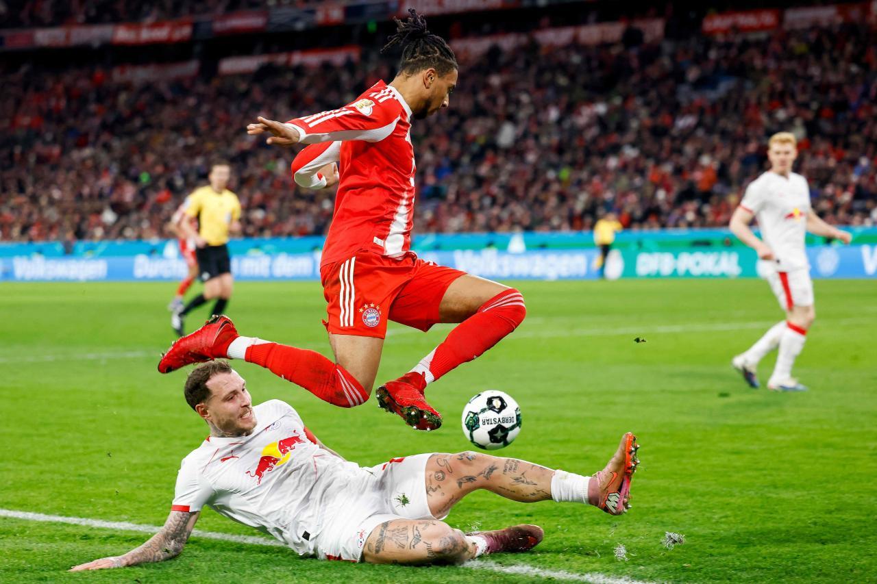 Die Bayern um den agilen Michael Olise kamen erst allmählich auf Touren. Leipzigs Schlussmann Vandevoordt parierte erst glänzend per Fuß gegen Kane, einen Abpraller des eigenen Mannes Willi Orban schlug Castello Lukeba gerade noch auf der Linie weg (12.).