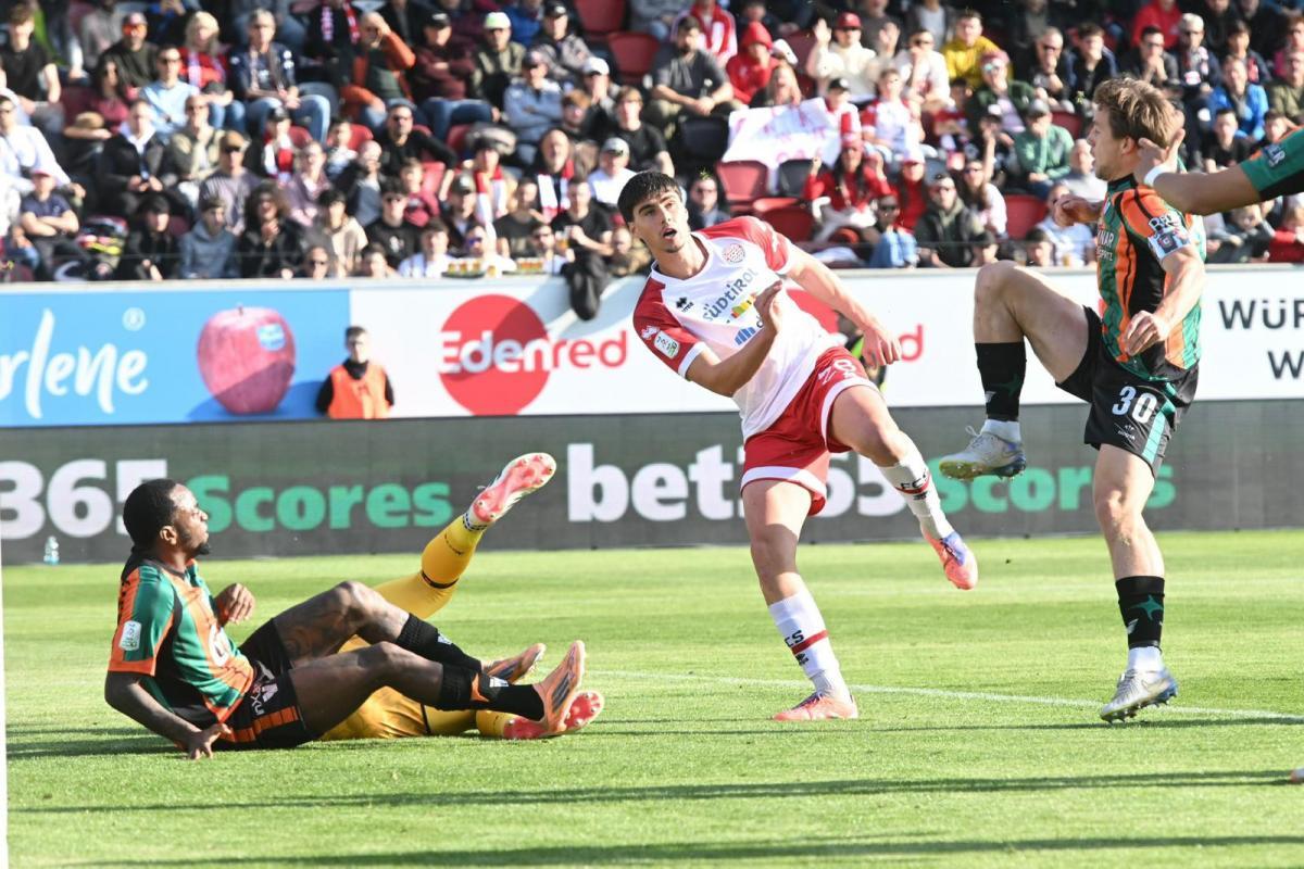 | Molina auf Merkaj! | Nur zwei Minuten sind gespielt und die zweite Halbzeit beginnt mit einem Knall: Molina verlädt Haps auf der rechten Seite, seine butterweiche Flanke erreicht Merkaj und dieser köpft zum 1:0 für den FCS sein. In der 53. Minute verpasst Casiraghi dann das 2:0 kläglich. |