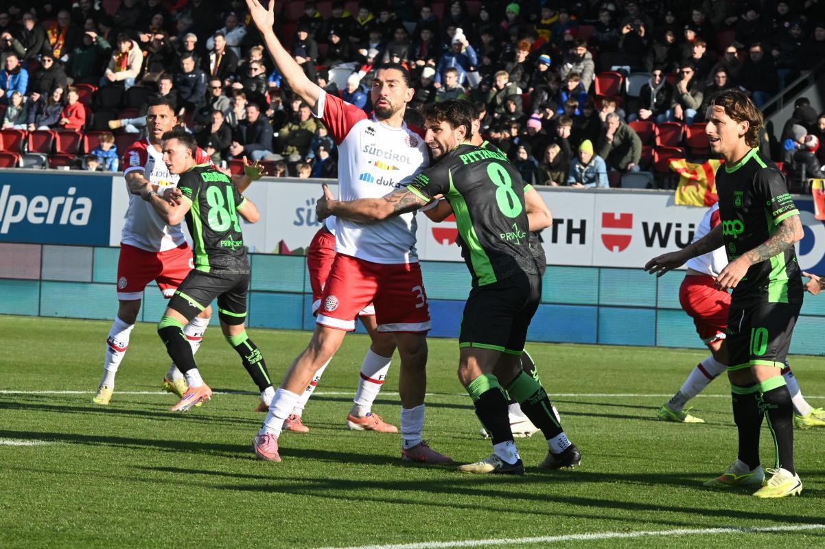 FCS (3-5-2): Adamonis; El Kaouakibi, Kofler, Veseli; Molina (ab 84. Federico Davi), Tait (ab 58. Frigerio), Tronchin (ab 58. Crnigoj), Casiraghi (ab 73. Bordon), Zedadka; Merkaj, Pecorino (ab 73. Odogwu)Trainer: Fabrizio Castori