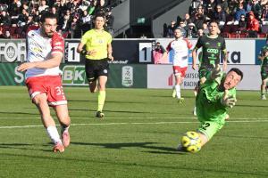 | Odogwu, der Held | Richtig brenzlig im Strafraum der Weiß-Roten wird es erst in der letzten Minute der Nachspielzeit. Nach einem Freistoß versucht es Pittarello mit einem wuchtigen Schuss, Odogwu steht aber goldrichtig und rettet mit der Brust auf der Linie (90.+6). Eine Zeigerumdrehung später ist der nächste FCS-Sieg besiegelt. |