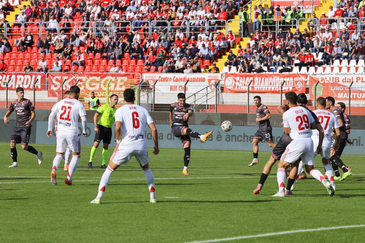 | Pecorino aus dem Nichts | Das Spiel macht Mantova, das Tor erzielt jedoch der FCS in der 40. Minute. Was war das für eine Flanke von Simone Davi, was für ein Kopfball von Pecorino. Der Stürmer steigt viel höher als der gegnerische Verteidiger und köpft den Ball in die rechte Ecke. |