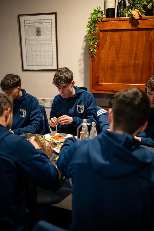 Zum Essen gibt es immer das klassische Fußballermenü. Gemüse, Nudel, Bresaola oder etwas Rohschinken und danach eine Crostata. Ein kurzer Kaffee, dann geht es weiter in Richtung Stadion.“Die Momente vor dem Spiel