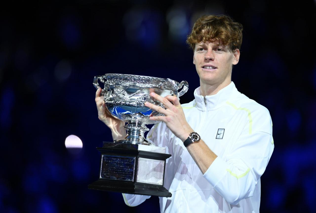 Neben dem neunten Grand-Slam-Halbfinale seiner Karriere winkt Sinner am Mittwoch übrigens auch ein besonderer Meilenstein. Mittlerweile hält der Weltranglistenzweite nämlich bei 18 aufeinanderfolgenden Siegen bei den Australian Open. Nur fünf Mal erspielte sich ein Athlet eine noch längere Serie als der zweimalige Triumphator von Melbourne.Zweimal hat Jannik Sinner die Australian Open schon gewonnen. © ANSA / JOEL CARRETT