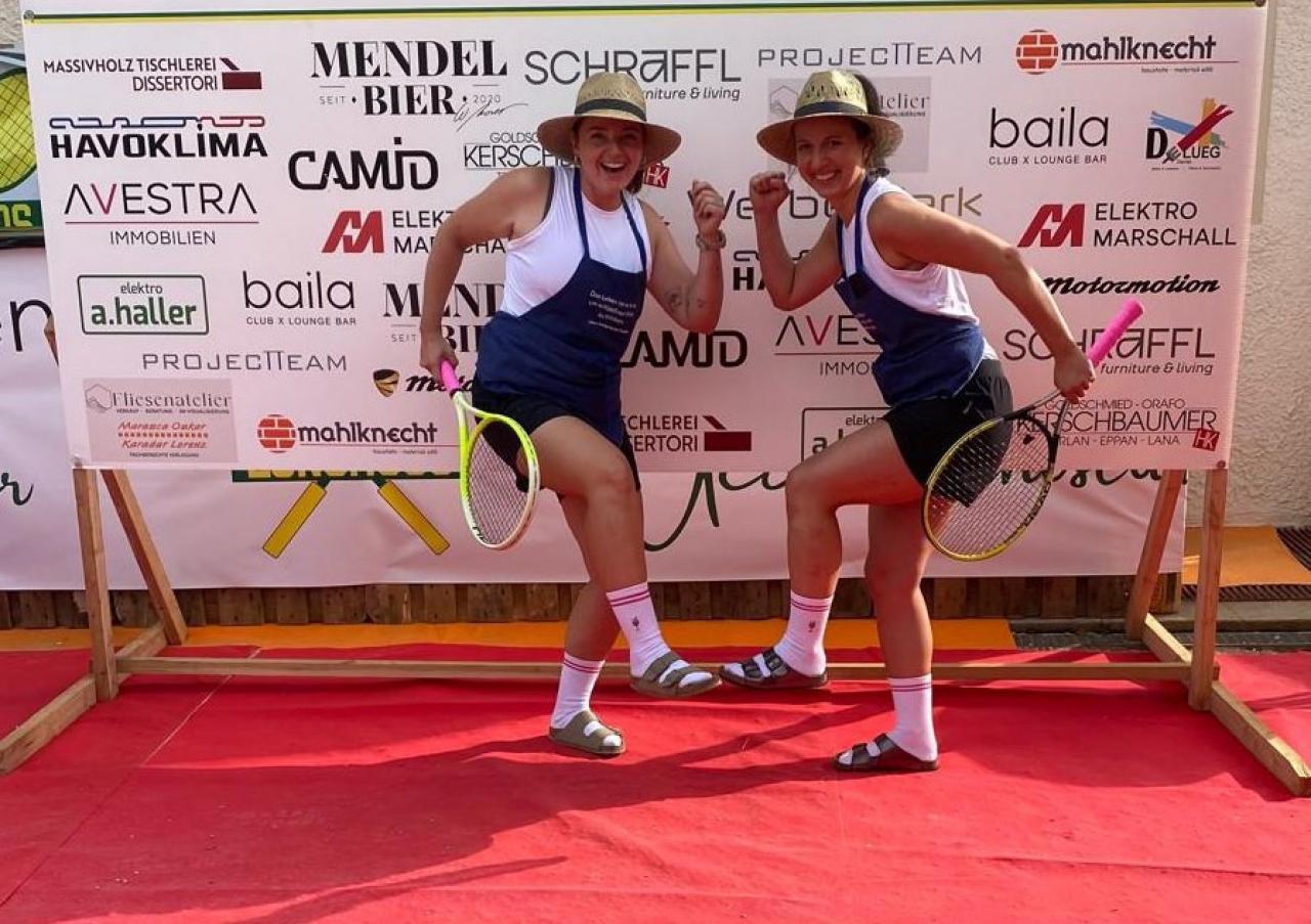 Seit einer Woche kämpfen die 64 Doppelmannschaften, in 8 verschiedenen Gruppen um die beste Ausgangslage auf den beiden Sandplätzen in Montiggl. Mit dabei sind wieder viele Hobbyspieler, aber auch bekannte Südtiroler Tennisspieler, die aber der Turniergedanke verbindet: Spaß, lustige Teamnamen und schräge Outfits.