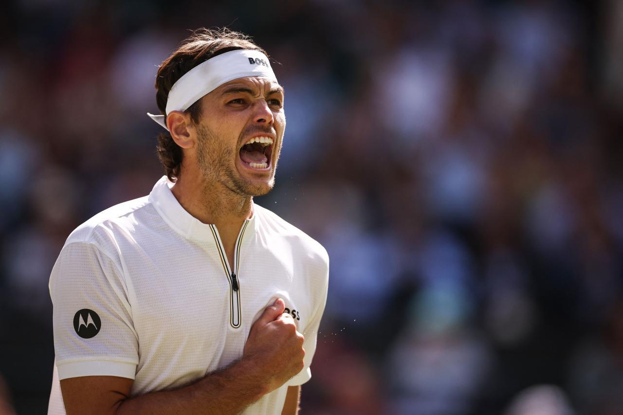 Fritz hatte mit den Turniersiegen in Stuttgart und Eastbourne eine fast perfekte Rasen-Vorbereitung auf das Major, nun steht der 27-Jährige zum zweiten Mal bei einem Grand Slam unter den letzten vier. Bei der Premiere hatte er es bei den vorjährigen US Open gar ins Endspiel geschafft, in dem er Jannik Sinner unterlegen ist.Taylor Fritz kämpfte sich weiter. © APA/afp / HENRY NICHOLLS