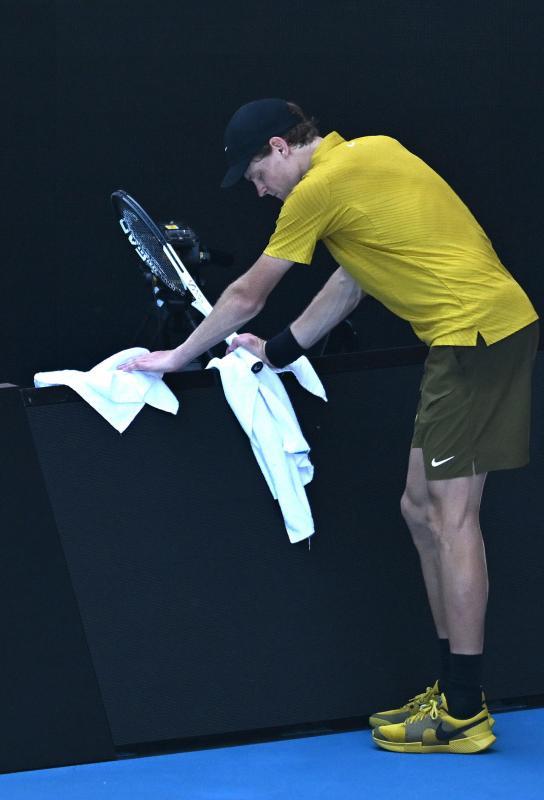Alle Hürden hatte Sinner zu diesem Zeitpunkt längst nicht übersprungen, denn sein Kontrahent fand im vierten Abschnitt wieder zu seinem Spiel. Noch mehr: Er ging dank teils unglaublicher Schläge erneut mit 3:1 in Führung. Aber wie reagiert ein Champion à la Jannik Sinner? Mit Tennis auf allerhöchstem Niveau, mit zwei Breaks, mit fünf Spielgewinnen in Serie. Auch das Ausservieren beim Stand von 5:4 meisterte er mit Bestnoten.Jannik Sinner machte die Hitze zu schaffen. © APA/afp / DAVID GRAY