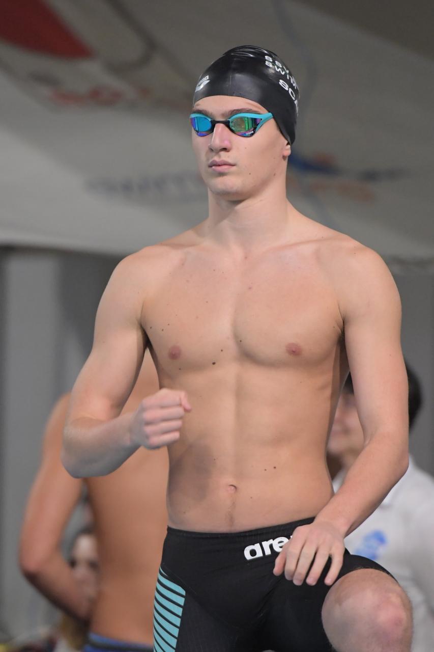 Auch der 100 m Schmetterling der Herren stand im Zeichen internationaler Klasse: Der niederländische WM-Finalist Nyls Korstanje, gestern noch Zweiter über 50 m Delfin, gewann heute in 51,05 Sekunden vor dem Este Daniel Zaitsev (51,71 s) und dem Italiener Michele Busa (52,36 s). Der Bozner Lokalmatador Luca Scampicchio überzeugte erneut und wurde mit 53,51 Sekunden Sechster – sein dritter starker Auftritt im Verlauf des Meetings. Über 50 m Rücken setzte sich Antonio Gregucci in 24,39 Sekunden durch. Hinter ihm folgten Arons Roderts (24,63 s) und der vielseitige Michele Busa (24,66 s), der damit an diesem Tag zwei Podestplätze sammelte.Luca Scampicchio wusste beim Heimspiel zu überzeugen.