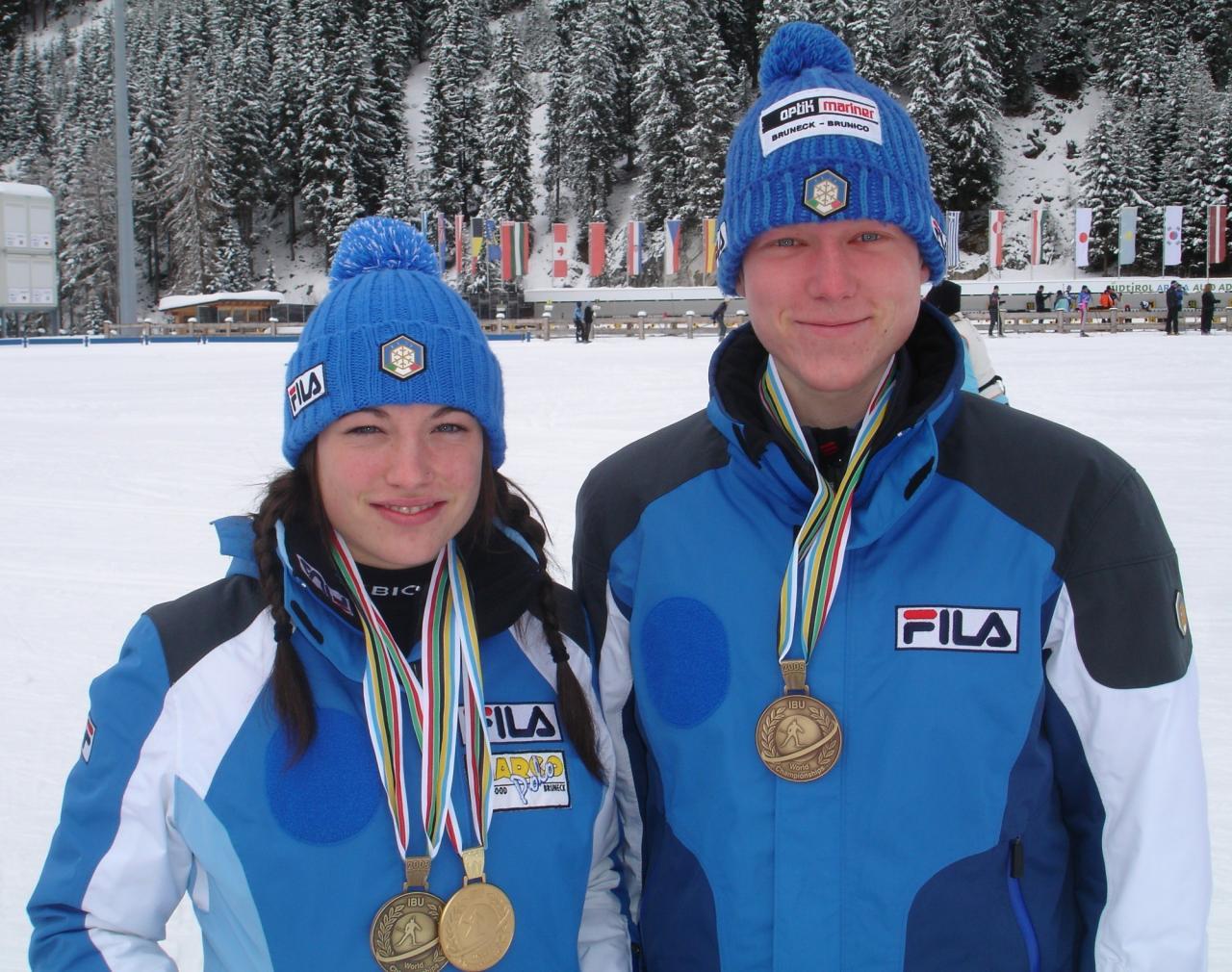 Im Nachwuchs machte die Südtirolerin früh auf sich aufmerksam. Über den Italiencup führte ihr Weg 2006/07 in den Junioren-Europacup. Bei den Jugendweltmeisterschaften in Martell überzeugte sie mit Rang 10 im Einzel sowie starken Resultaten in Sprint (16.) und Verfolgung (14.). Ein Jahr später folgte in Ruhpolding der erste große Titel: Mit 17 krönte sie sich im Einzel zur Jugendweltmeisterin.Dorothea Wierer und Lukas Hofer im Jahr 2008. © "D"