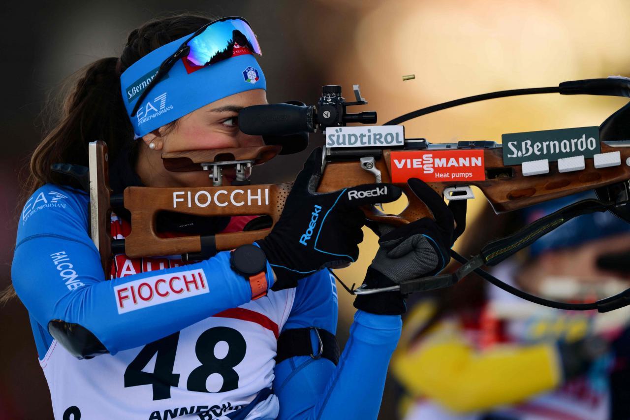 Wierer fügte hinzu, dass sie sich jeden Tag anders fühle. „Ich hoffe, dass ich über Weihnachten meine Energien wieder aufladen kann und ich für den Februar gewappnet bin.“ Vorerst steht für sie am Samstag um 12.15 Uhr aber die Verfolgung auf dem Programm, in der sie wenige Sekunden vor Vittozzi starten wird. „Heute hat sich die Müdigkeit etwas bemerkbar gemacht. Ich habe gefühlt, wie mir die Energien am Ende etwas fehlten. Aber ich bin nichtsdestotrotz mit meinem Rennen zufrieden“, sagte die 30-jährige Friaulerin.Lisa Vittozzi wurde Vierte. © APA/afp / OLIVIER CHASSIGNOLE