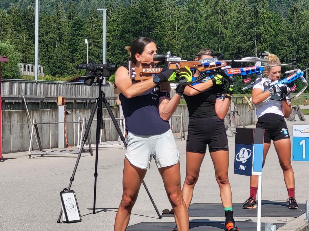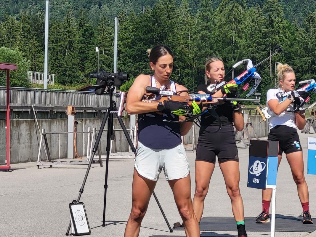 Es waren nur allzu vertraute Geräusche, die über den Schießstand in der Chiemgau Arena in Ruhpolding hallten. Eine Scheibe nach der anderen fiel, leere Patronenhülsen klackerten auf den Boden, Rollerski glitten über den heißen Asphalt. Ein Trainingslager wie jedes andere – und doch etwas Besonderes. Ein bestimmtes Gesicht zog die Aufmerksamkeit der rund 15 schaulustigen Gäste in der Arena auf sich. Nämlich das von Lisa Vittozzi.