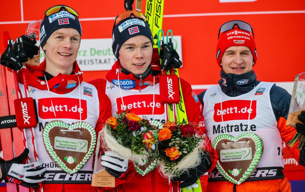 Die heimischen Nordischen Kombinierer zeigen weniger als einen Monat vor dem Beginn der Olympischen Spiele in Mailand und Cortina d’Ampezzo eine stark aufsteigende Tendenz. Am Sonntag wussten sie im deutschen Oberhof erneut zu überzeugen.