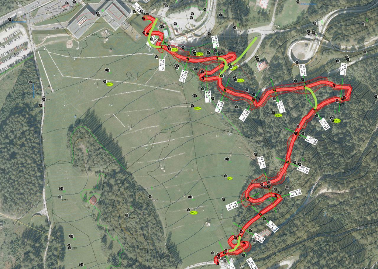 „Die ursprüngliche Rodelbahn von 1964 sieht man noch, das alte Starthaus von damals z.B. ist heute ein Einfamilienhaus. Wir starten dort ganz in der Nähe, im oberen Bereich folgt die neue Bahn praktisch zur Gänze der alten Trasse. Durch die alten Mauern lässt sich die alte Bahn noch sehr gut erahnen, auch wenn heute alles zugewachsen ist. Im unteren Teil folgen wir parallel dem Auffahrtsweg zum Start der Kunstbahn. In Summe nutzt die neue Naturrodelbahn zum Großteil die Linie der über 60 Jahre alten Bahn.“