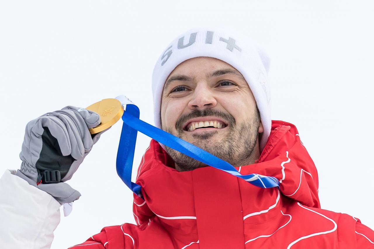Loic Meillard mit der Goldmedaille. © APA / EXPA/ JOHANN GRODER
