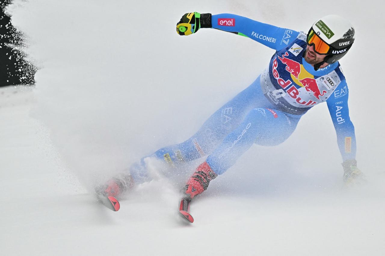 Seinen Triumph vor rund 45.000 Zuschauern konnte er im Anschluss noch nicht so richtig realisieren. „Es ist ein Traum, ich zittere vor Emotionen“, meinte Franzoni. Das Ergebnis im Super-G habe Druck von seinen Schultern genommen. „Bis zum Brückenschuss habe ich ein paar kleine Fehler gemacht, ab dort bin ich aber meiner Meinung nach unglaublich Ski gefahren.“ Besondere Motivation gab ihm auch der Gedanke an den verstorbenen Matteo Franzoso, einen seiner besten Freunde. „Matteo war in meinem Kopf, weil wir letztes Jahre das Zimmer geteilt haben. Das war der richtige Moment, ihm das Rennen zu widmen – denn das will jeder gewinnen.“Florian Schieder mischte wieder einmal vorne mit. © APA/afp / JOE KLAMAR