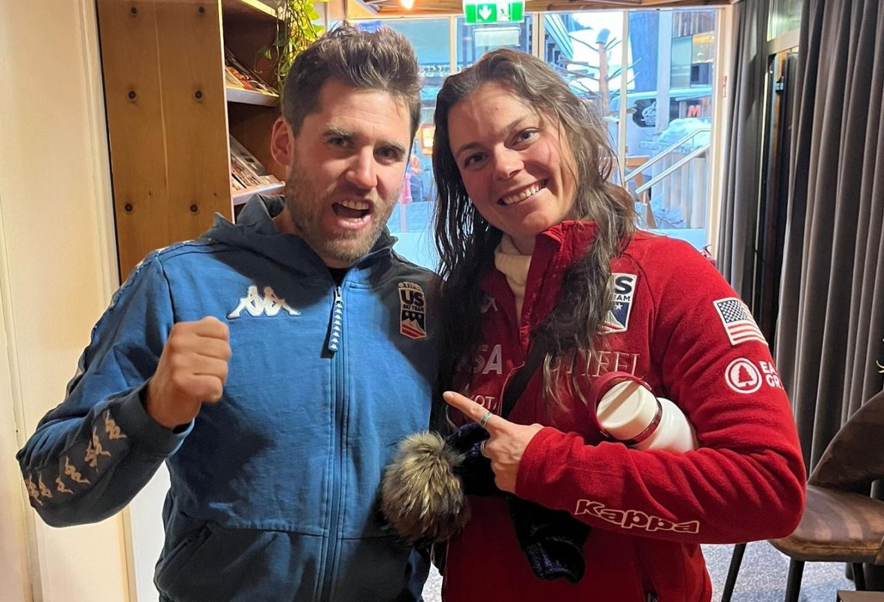Daniel Dejori und die neue Weltmeisterin Breezy Johnson.
