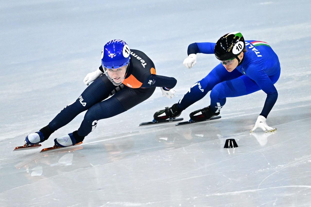 Arianna Fontana (hinten) holte ihre zwölfte Olympia-Medaille im Shorttrack. © APA/afp / JULIEN DE ROSA